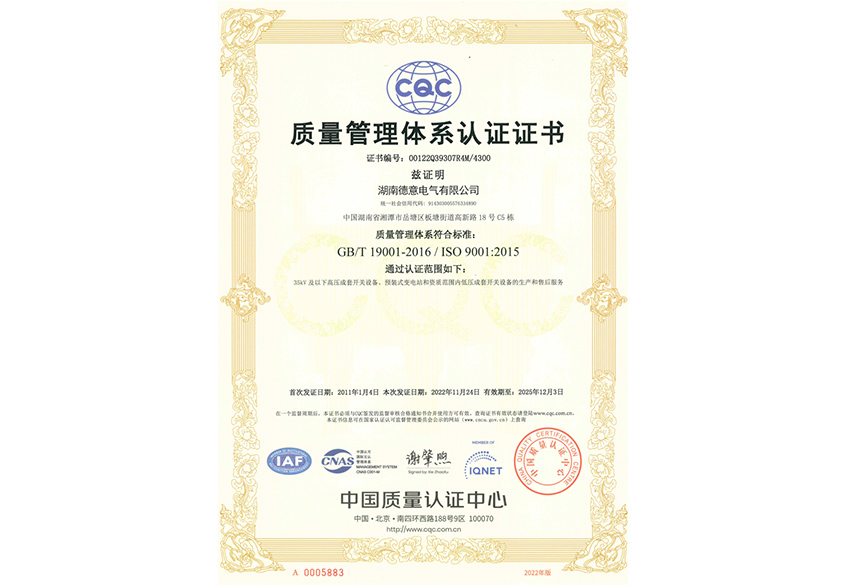 質(zhì)量管理體系認(rèn)證證書(shū)
