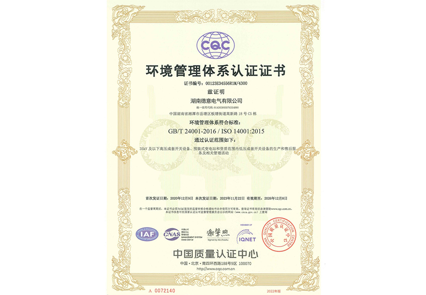 環(huán)境管理體系認(rèn)證證書(shū)