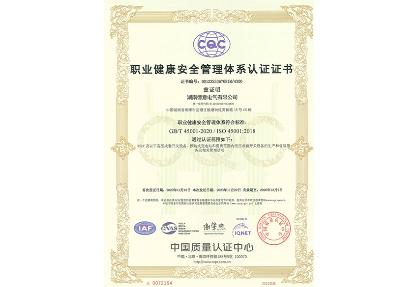 職業(yè)健康安全管理體系認(rèn)證證書(shū)