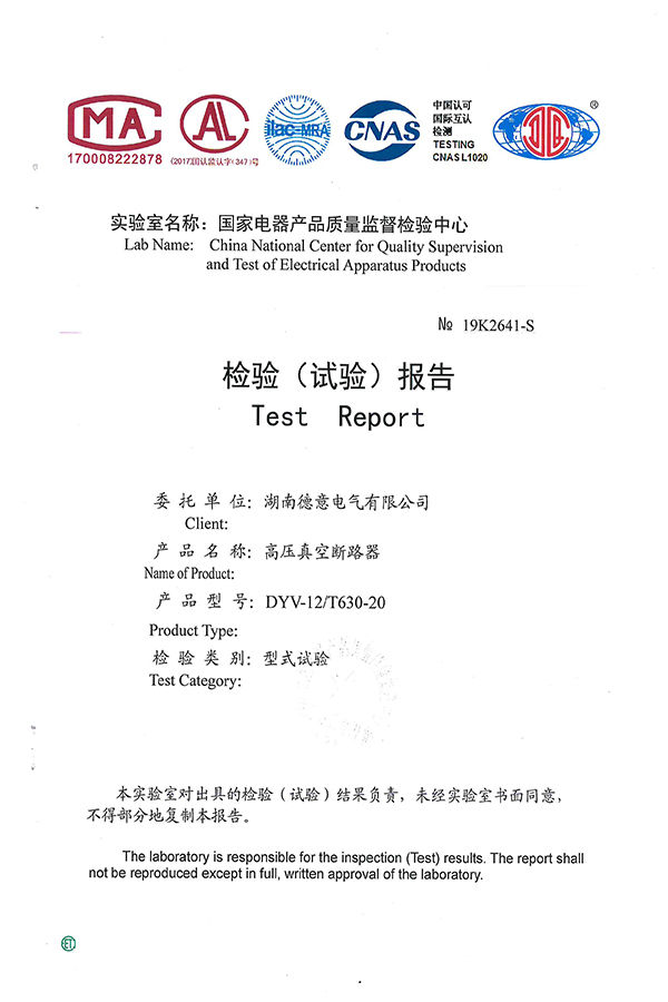 DYV-12/T630-20 10kV高壓真空斷路器試驗報告