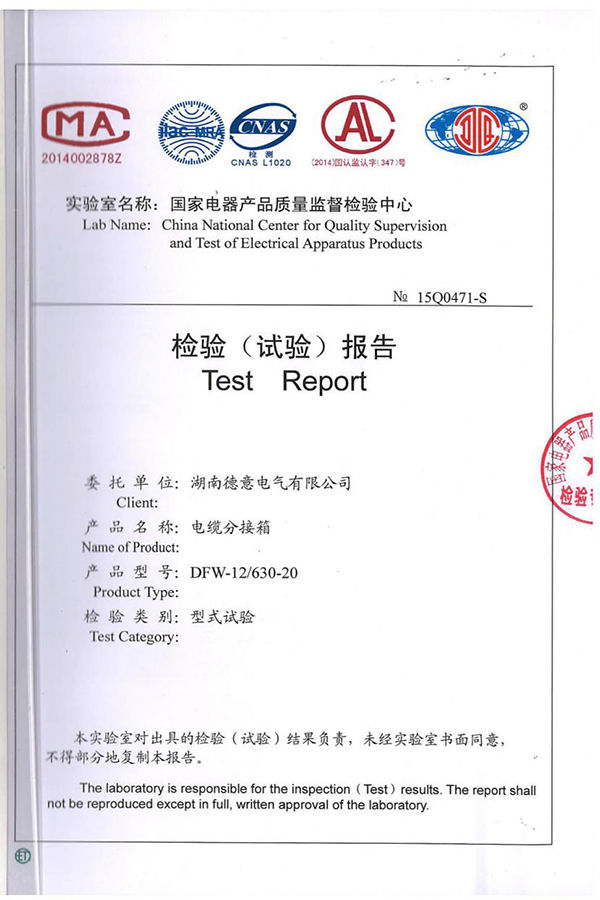 DFW-12/630-20電纜分接箱試驗報告