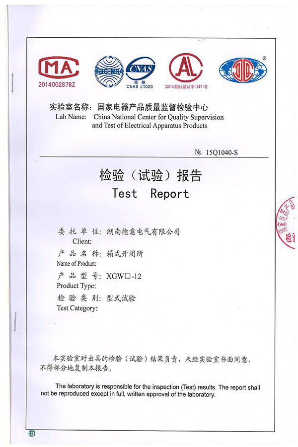 XGW□-12箱式開閉所試驗報告