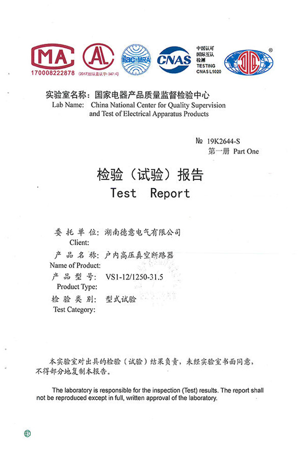 VS1-12/1250-31.5戶內(nèi)高壓真空斷路器試驗報告